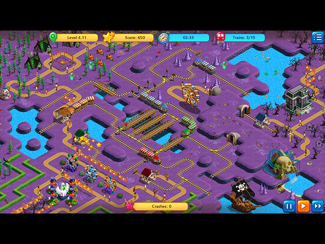 Organize railroad networks in this exciting time management game! Direct trains and monorails to clear areas and venture into new park sections. Manage locations like the “Wild West” and “Pirate Bay," and use your skills to earn trophies and awards. There’s something for everyone in this runaway railway adventure! - Railway Fun: Adventure Park