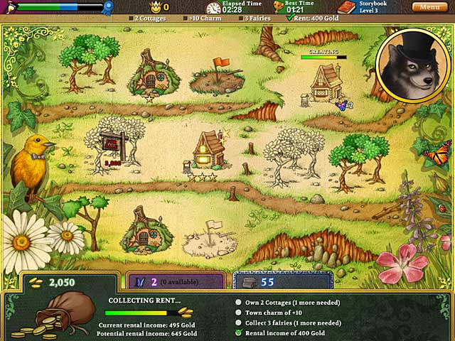 Turn the pages of your very own story full of fairies, magic and adventure. Travel across lush meadows, climb a windswept mountain and journey deep into a dark forest. Use your fairies and your skill to create whimsical houses, mystical structures and amazing wonders for a variety of familiar storybook characters. Work quickly and strategically to buy and sell properties and make as much gold as possible. Can you construct a flying machine? Can you protect the town from fire-breathing dragons? Is that crown wearing frog really a prince? Find out in Build-a-lot Fairy Tales. - Build-a-lot: Fairy Tales