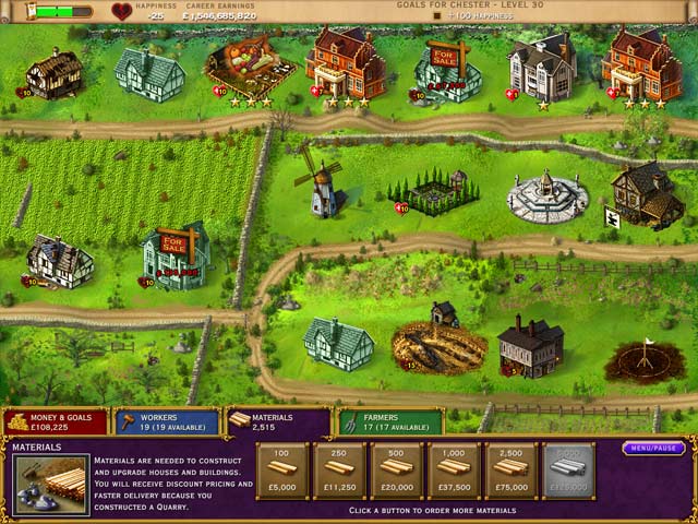 Travel back in time to Queen Elizabeths kingdom where challenging fun rules the realm. Take on a host of new adventures without the aid of modern conveniences in this unique Time Management game. From a single thatched house you begin your journey through Elizabethan England. With wells and windmills, crops and carpentry, youll grow your one cob house to a full, flourishing shire in Build-a-lot: The Elizabethan Era! - Build-a-Lot: The Elizabethan Era