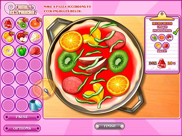 Test your cooking skills in the kitchen of your father`s restaurant. The more tasteful and creative the recipes, the better the chance to get the ultimate goal of a 5 star rating. Deal with time pressure and stress by cooking multiple dishes at the same time. Boost sales by inventing creative recipes of your own. - Family Restaurant