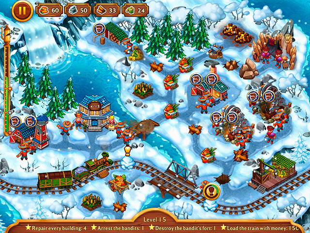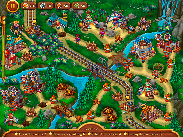 A land of opportunity lies before Jack and Jill as they start their well-earned vacation following their first adventure, but as their train rumbles along, the sounds of hoofbeats and gunshots welcome them to the lawless frontier! Before too long, they find themselves tasked with building a railroad to connect a troubled small town with the civilized world. But even as they tame the unforgiving terrain, Buford and his band of thieves stand in their way. Choose the best strategy to complete levels using an innovative bonus system as you rebuild settlements and keep the outlaws at bay. Along the way, you'll recruit the help of Native Americans, overcome clever challenges, and unlock surprising story twists in this rootin’-tootin' Time Management strategy game for all ages! - Golden Rails: Small Town Story