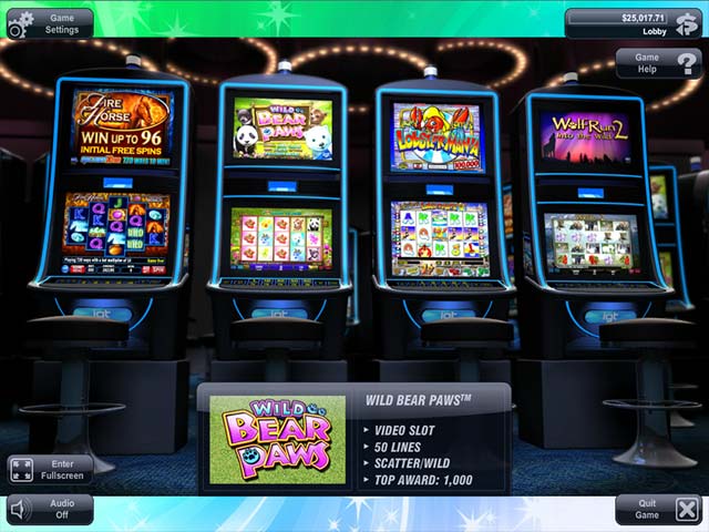 Enjoy a fun and diverse set of IGT slots including the popular casino machine: Wild Bear Paws, the brand new way to play on PC & Mac! This machine is ready to roar with Stacked Wilds and a Volatility Picker which allows you to customize your own bonus round with all sorts of Free Spins and big Multiplier combinations!