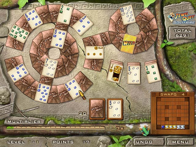 This jewel-themed tri-peaks solitaire game will keep you mesmerized for hours. Match card suits to make gold as you unearth buried cards, avoid cursed jewels, and solve more than 100 card layouts on a South American trek. Embark on your adventure today. Riches and glory are in the cards! - Jewel Quest Solitaire