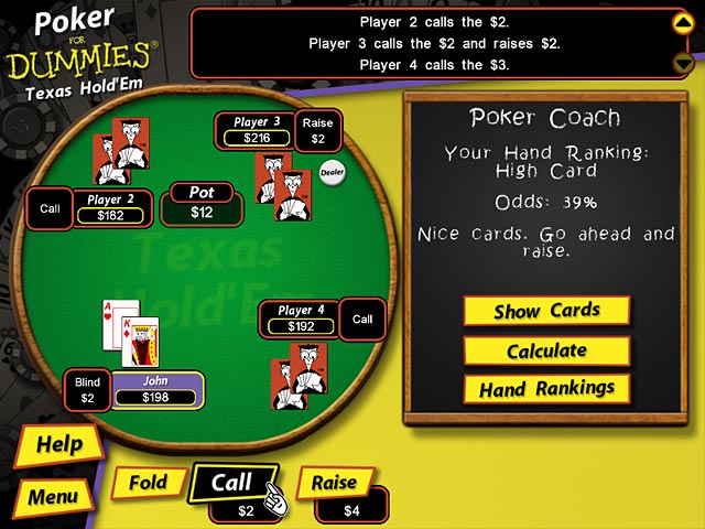 Learn when to hold `em and when to fold `em in this exciting, user-friendly poker suite! Learn the ropes of several popular poker variations and sharpen your new-found skills at the practice table. When you're ready take your poker face to a real game; ante, call, bluff, and bet your way to the bank in this thrilling, educational card game! Go all in with Poker for Dummies! - Poker for Dummies